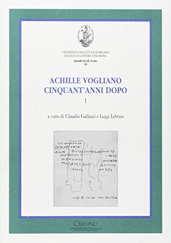 Achille Vogliano cinquant'anni dopo / a cura di Claudio Gallazzi e Luigi Lehnus.