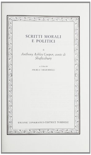 Scritti morali e politici / di Anthony Ashley Cooper, conte di Shaftesbury ; a cura di Angela Taraborrelli.