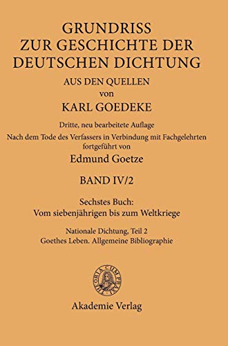 Karl Goedeke. Grundriss zur Geschichte der deutschen Dichtung aus den Quellen. Band IV. Band IV/2. Sechstes Buch: Vom siebenjährigen bis zum Weltkriege ; Nationale Dichtung. Teil 2: Goethes Leben. Allgemeine Bibliographie / hrsg. von Karl Goedeke, Edmund Goetze.