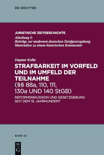 Strafbarkeit im Vorfeld und im Umfeld der Teilnahme (§§ 88a, 110, 111, 130a und 140 StGB) : Reformdiskussion und Gesetzgebung seit dem 19. Jahrhundert / Dagmar Kolbe.