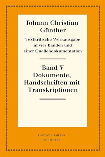 The documentary volume offers a complete reproduction of the autograph versions, duplicates, and single reprints of Günther's poetry, thus providing a clear impression of the works and their rare textual sources. Of the documented reprints and collected manuscripts, only a third have survived, and of the printed works, many have been preserved in only a single copy. Transcriptions are included.
