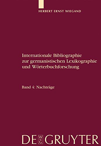 Internationale Bibliographie zur germanistischen Lexikographie und Wörterbuchforschung : Mit Berücksichtigung anglistischer, nordistischer, romanistischer, slavistischer und weiterer metalexikographischer Forschungen. Band 4, Nachträge / Herbert Ernst Wiegand.