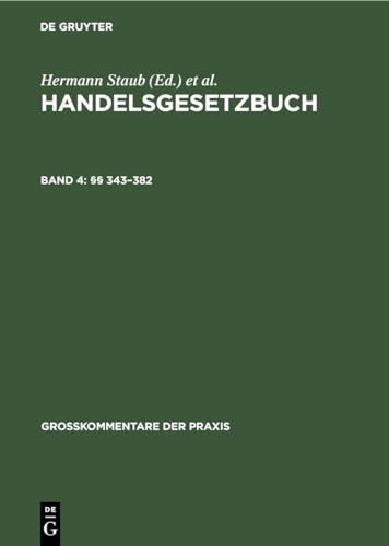 Frontmatter -- Bearbeiter der 4. Auflage -- Inhaltsübersicht -- Vorbemerkung zum Abschluss der 4. Auflage -- VIERTES BUCH. Handelsgeschäfte -- Erster Abschnitt. Allgemeine Vorschriften -- Vorbemerkung zu den §§ 343 ff -- §344 (1) und (2) -- §345 -- §346 -- § 347 (1) und (2) -- § 348 -- §349 -- § 350 -- §351 -- §352 -- §353 -- § 354 (1) und (2) -- § 355 (1) und (2) -- § 356 (1) und (2) -- §357 -- §358 -- § 359 (1) und (2) -- §360 -- § 361 -- § 362 (1) und (2) -- § 363 (1) und (2) -- § 364 (1) , (2) und (3) -- § 365 (1) und (2) -- §366 (1) , (2) und (3) -- § 367 -- §368 -- § 369 (1), (2), (3) und (4) -- § 370 -- § 371 (1),(2),(3) und (4) -- § 372 (1) und (2) -- Drittes Buch. Handelsgeschäfte -- Zweiter Abschnitt. Handelskauf -- Vorbemerkung Vor § 373 -- § 374 -- § 375 (1) und (2) -- § 376 (1),(2),(3) und (4) -- §377 -- §378 -- §379 -- §380 -- § 381 -- § 382 -- Sachregister