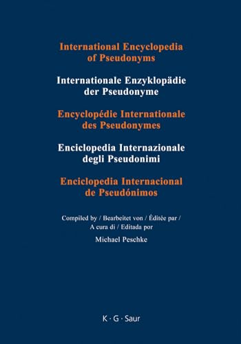 This Encyclopedia is the first to compile pseudonyms from all over the world, from all ages and occupations in a single work: some 500,000 pseudonyms of roughly 270,000 people are deciphered here. Besides pseudonyms in the narrower sense, initials, nick names, order names, birth and married names etc. are included.