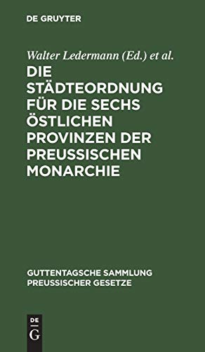 Die Städteordnung für die sechs östlichen Provinzen der Preussischen Monarchie : Vom 30. Mai 1853. Nebst ihren gesetzlichen Ergänzungen / hrsg. von Walter Ledermann, Ludwig Brühl.