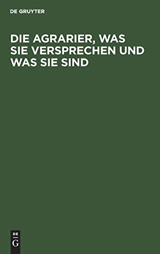 Frontmatter -- Die Agrarier, was sie versprechen und was sie sind. Einleitung -- I. Was die Agrarier versprechen -- II. Wer sind die Agrarier?