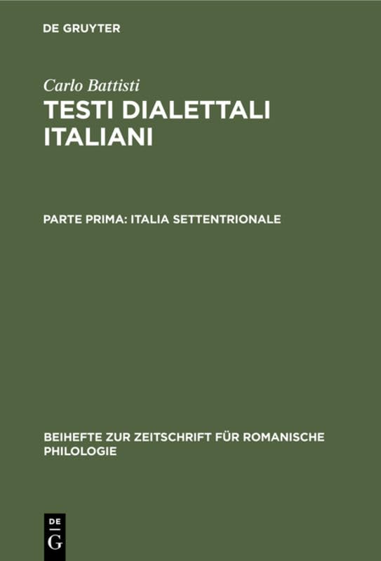 Frontmatter -- Contenuto -- Introduzione -- Indicazioni sulla trascrizione fonetica -- I. Gruppo veneto -- II. Gruppo Lombardo -- III. Gruppo piemontese -- IV. Gruppo ligure -- V. Gruppo emiliano -- Elenco alfabetico dei luoghi -- Indice degli autori e dei trascrittori -- Prospetto delle varietà dialettali -- Backmatter