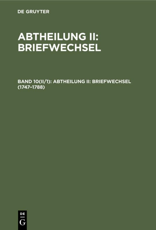 Abtheilung II: Briefwechsel. Band 10 (II/1), 1747–1788.