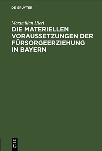 Die materiellen Voraussetzungen der Fürsorgeerziehung in Bayern / Maximilian Hierl.