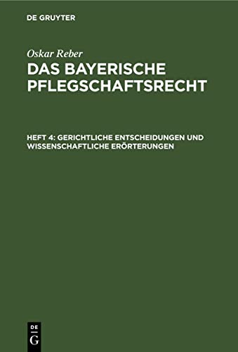 Das bayerische Pflegschaftsrecht : Eine Sammlung aller das Pflegschaftswesen im Königreiche Bayern betreffenden Gesetze, Verordnungen, Ministerialanordnungen, Kreisausschreibungen, Erkenntnisse und Erörterungen, mit Geschäftsformularien und erläuternden Noten. Heft 4, Gerichtliche Entscheidungen und wissenschaftliche Erörterungen.
