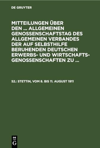 Mitteilungen über den . Allgemeinen Genossenschaftstag des Allgemeinen Verbandes der auf Selbsthilfe beruhenden Deutschen Erwerbs- und Wirtschaftsgenossenschaften zu . 52., Stettin, vom 8. bis 11. August 1911.