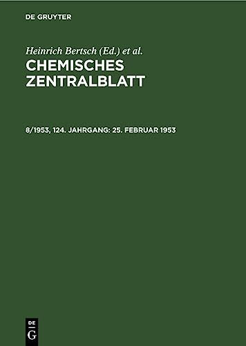 Chemisches Zentralblatt : Vollständiges Repertorium für alle Zweige der reinen und angewandten Chemie. [1.1897–140.1969]. Später ersch. getrennt: Autoren- u. Patentregister; Sachregister; Formelregister . 8/1953, 124. Jahrgang, 25. Februar 1953.