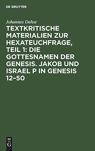 Textkritische Materialien zur Hexateuchfrage, Teil 1: Die Gottesnamen der Genesis. Jakob und Israel P in Genesis 12–50 / Johannes Dahse. by
