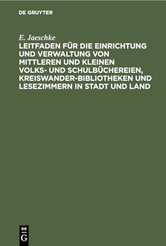 Leitfaden für die Einrichtung und Verwaltung von mittleren und kleinen Volks- und Schulbüchereien, Kreiswanderbibliotheken und Lesezimmern in Stadt und Land : Für die Praxis dargestellt / E. Jaeschke. by