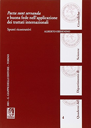 Pacta sunt servanda e buona fede nell'applicazione dei trattati internazionali : spunti ricostruttivi / Alberto Oddenino. by Series: Quaderni del Dipartimento di scienze giuridiche / Università degli studi di Torino ; 004
