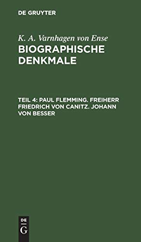 Biographische Denkmale. Teil 4, Paul Flemming. Freiherr Friedrich von Canitz. Johann von Besser / K. A. Varnhagen von Ense. by Series: Biographische Denkmale ; Teil 4