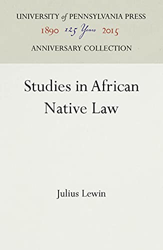 Studies in African Native Law / Julius Lewin. by Series: Anniversary Collection