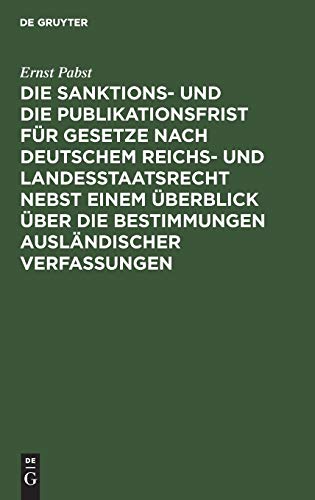 Die Sanktions- und die Publikationsfrist für Gesetze nach deutschem Reichs- und Landesstaatsrecht nebst einem Überblick über die Bestimmungen ausländischer Verfassungen / Ernst Pabst. by