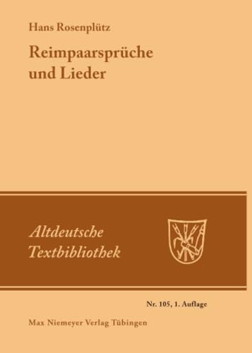 Reimpaarsprüche und Lieder / Hans Rosenplüt; hrsg. von Jörn Reichel. by Series: Altdeutsche Textbibliothek ; 105