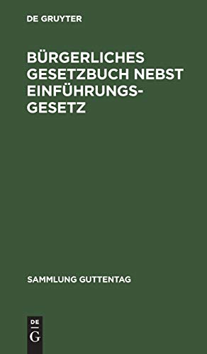 Bürgerliches Gesetzbuch nebst Einführungsgesetz : Vom 18. August 1896. Mit Berücksichtigung der bis 1. April 1919 ergangenen Abänderungen. Textausgabe mit ausführlichem Sachregister. Series: Sammlung Guttentag