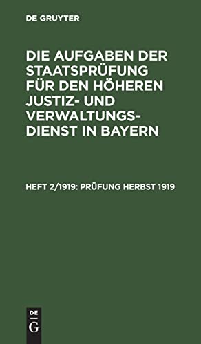 Die Aufgaben der Staatsprüfung für den höheren Justiz- und Verwaltungsdienst in Bayern : mit amtlicher Erlaubnis. Heft 2/1919, Prüfung Herbst 1919. Series: Die Aufgaben der Staatsprüfung für den höheren Justiz- und Verwaltungsdienst in Bayern ; Heft 2/1919