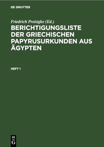 Berichtigungsliste der griechischen Papyrusurkunden aus Ägypten. Heft 1 / hrsg. von Friedrich Preisigke. by Series: Berichtigungsliste der griechischen Papyrusurkunden aus Ägypten ; Heft 1