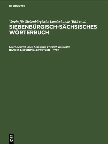 Siebenbürgisch-Sächsisches Wörterbuch : Mit Benützung der Sammlung Johann Wolffs. Band 2, Lieferung 4, fretzen – Fyst / Georg Keintzel, Adolf Schullerus, Friedrich Hofstädter; hrsg. von Verein für Siebenbürgische Landeskunde. by Series: Siebenbürgisch-Sächsisches Wörterbuch ; Band 2, Lieferung 4