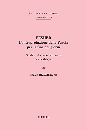 Pesher: l'interpretazione della Parola per la fine dei giorni : studio sul genere letterario dei Pesharym / di Nicolò Rizzolo. by Series: Études bibliques. Nouvelle série ; 073