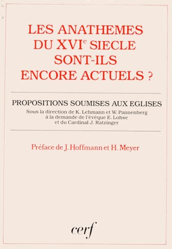 Les anathèmes du XVIe siècle sont-ils encore actuels? : les condamnations doctrinales du concile de Trente et des réformateurs justifients-elles encore la division de nos Églises? : propositions soumises aux Églises catholique, luthérienne et réformée en Allemagne / sous la dir. de Karl Lehmann et Wolfhart Pannenberg à la demande de l'évêque E. Lohse et du card. Ratzinger ; trad. ... par Pierre Jundt et Joseph Hoffmann ; pr. de J. Hoffmann et H. Meyer. by