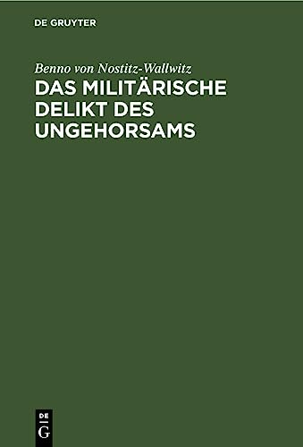 Das militärische Delikt des Ungehorsams / Benno von Nostitz-Wallwitz. by