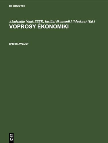 Voprosy ėkonomiki : Issues of economics. 8/1981, Avgust / Akademija Nauk SSSR, Institut ėkonomiki (Moskau). by