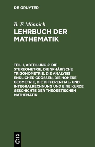 Lehrbuch der Mathematik : mit Rücksicht auf solche, welche sie erlernen, um sie bei . Berufsgeschäften zu benutzen. Teil 1, Abteilung 2, Die Stereometrie, die sphärische Trigonometrie, die Analysis endlicher Größen, die höhere Geometrie, die Differential- und Integralrechnung und eine kurze Geschichte der theoretischen Mathematik. by Series: Lehrbuch der Mathematik ; Teil 1, Abteilung 2